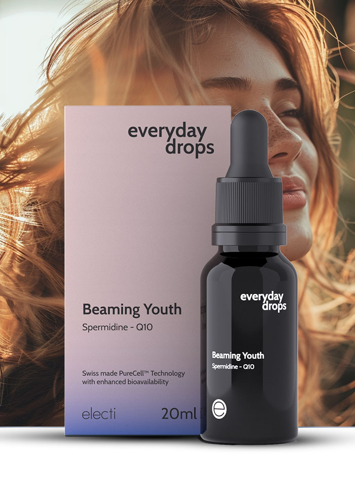 Αξιοποιώντας τη δύναμη του κύριου ενεργού συστατικού, το Spermidine, το Beaming Youth έχει αποδειχθεί επιστημονικά ότι προάγει την υγιή αυτοφαγία, ενισχύει την ανοσολογική απόκριση, παρέχει αντιγηραντικά οφέλη και προσφέρει αντιφλεγμονώδη υποστήριξη για τη συνολική υγεία και μακροζωία. Υποστηρίζοντας τη ζωτική διαδικασία της αυτοφαγίας, το Beaming Youth ενεργοποιεί, διατηρεί και προστατεύει τα κύτταρα σας από τη γήρανση, δίνοντάς σας το δώρο της συνολικής κυτταρικής αναζωογόνησης που μπορείτε να αισθανθείτε, να δείτε και να βιώσετε.